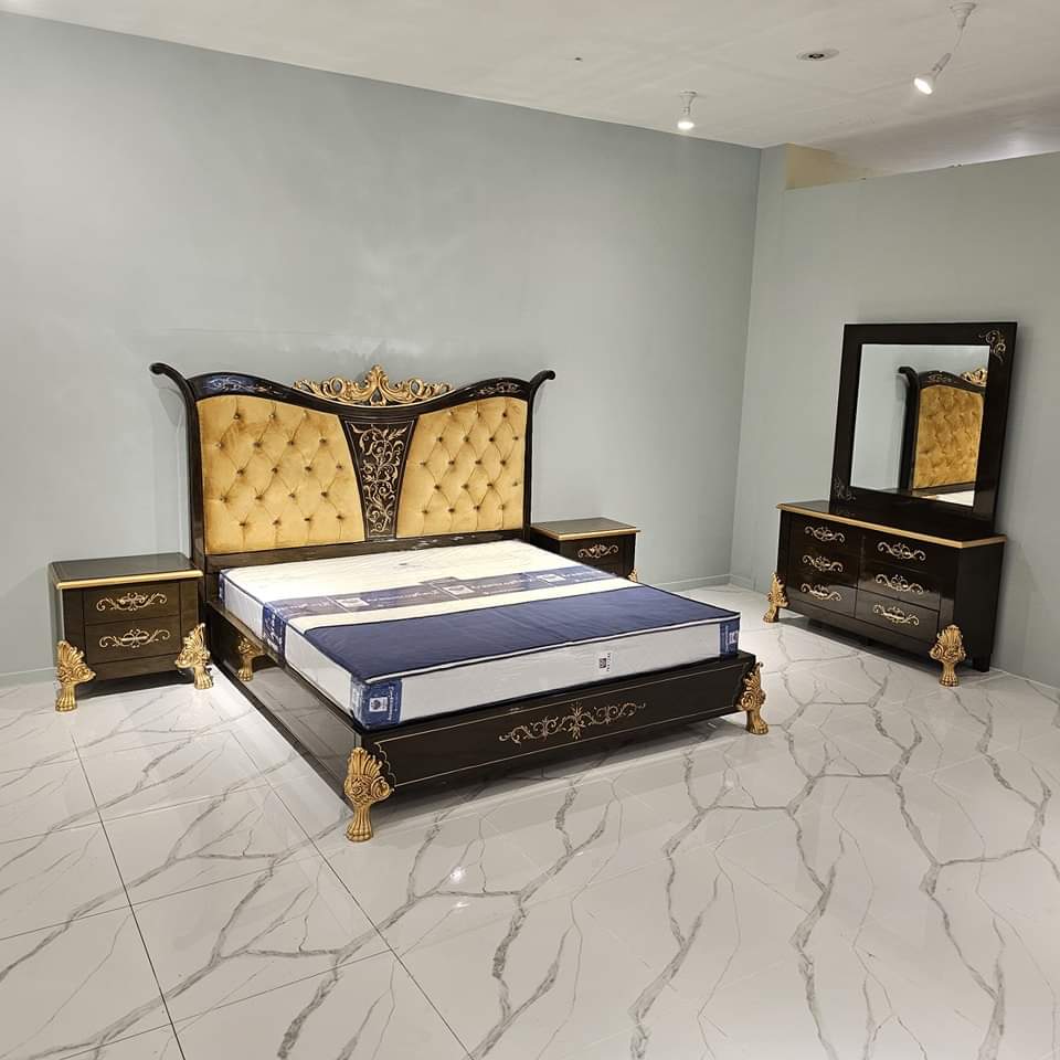 ntroducing the AntiqueElegance Bestseller Bed # AS21 model bed set – a beautifully crafted double bed that exudes elegance and sophistication. Constructed with a solid keekar wood structure, both the headboard and footboard ensure robustness and longevity for the entire bed frame. To enhance its aesthetic appeal, the bed is adorned with an ash veneer finish, resulting in a mesmerizing high gloss look that effortlessly enhances the overall ambiance. Boasting clean lines and a minimalist design, the AntiqueElegance Bestseller Bed # AS21 model bed set effortlessly adapts to any bedroom decor style, making it an incredibly versatile furniture piece. Whether you seek a contemporary and chic bed or a more traditional and timeless design, the AntiqueElegance Bestseller Bed # AS21 model bed set serves as an exquisite statement piece, instantly elevating the visual appeal and atmosphere of your bedroom.
